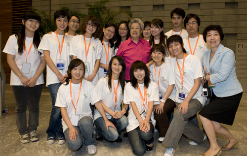參觀結(jié)束時(shí),來(lái)自京滬兩地的“走進(jìn)世博會(huì)”展覽青年志愿者們自發(fā)等候在展廳出口處向“吳奶奶”問(wèn)好。吳儀鼓勵(lì)大家要當(dāng)好世博會(huì)志愿者,并與他們合影留念。