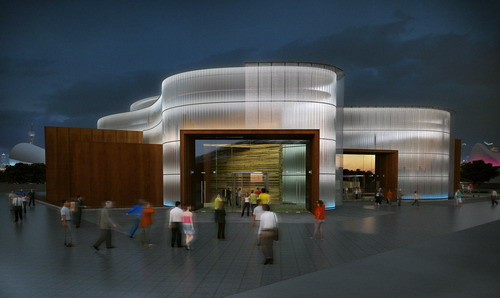 據(jù)智利館的全程服務(wù)商上海美術(shù)設(shè)計公司副總經(jīng)理王海利介紹,智利館的設(shè)計理念是一個呈波浪般起伏的水晶杯,又有大海中航船的意象。在造型復(fù)雜的鋼 結(jié)構(gòu)和玻璃墻之外,覆有特制的鋼絲網(wǎng),加上大面積的屋頂花園,可起到遮陽節(jié)能的作用。