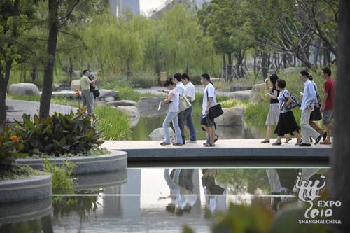 于志遠(yuǎn)表示,設(shè)計人員希望將世博公園打造成一個“自然而不失精致、時尚而不失傳統(tǒng)、節(jié)儉而不失文化、舒適而不失生態(tài)”的公園。世博會時,每天將可容納八萬游客在這里小憩;世博會后,這里將為城市提供優(yōu)質(zhì)的自然生態(tài)環(huán)境及人文景觀,成為市民休閑、才藝展示的好地方。