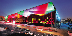 主題館的金屬色既不單調(diào),也不冷峻。整個(gè)建筑的明快線條和多變圖形,在金屬閃光中挾著一股現(xiàn)代暖風(fēng),迎面吹來。這個(gè)館堪稱世界級(jí)展館中的“巨無霸”:西廳2.5萬平方米,相當(dāng)于3個(gè)標(biāo)準(zhǔn)足球場(chǎng);東廳兩層,各有1.7萬平方米;另外還有幾萬平方米的地下廳、中廳和下沉廣場(chǎng)。在世博會(huì)150年的歷史上,這是面積最大的一個(gè)展館。