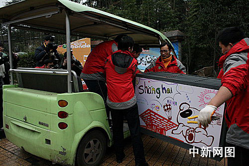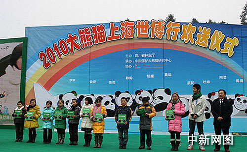 5日上午8點(diǎn),“2010大熊貓世博行”歡送儀式在雅安碧峰峽基地舉行,儀式后10只世博熊貓于9:30左右啟程前往成都,將于下午13:30-14:00之間從成都雙流機(jī)場(chǎng)乘專機(jī)飛往上海。