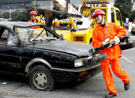 1月29日,由上海市公安局交警總隊(duì)組織的2010年上海市“清障施救”技能比武在浦東科技館停車場舉行,全市10個中心區(qū)和寶山區(qū)、閔行區(qū)以及高架、高速等高等級道路清障施救網(wǎng)絡(luò)的16家單位參加了比武活動。大賽模擬城市道路發(fā)生交通事故,車輛發(fā)生翻車,要求搶險人員快速處理,以防二次事故發(fā)生。此舉旨在確保2010年上海世博會期間高強(qiáng)度車流情況下的城市道路安全暢通,提高道路清障施救人員面對突發(fā)險情時的應(yīng)急處置能力。(孫國富 陳飛)