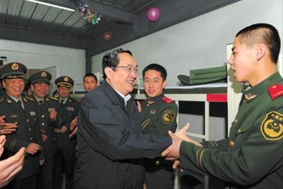 部隊(duì)駐地,戰(zhàn)士們精神抖擻,士氣高昂。俞正聲說(shuō),今天是大年初一,同志們辛苦了。按照黨中央、國(guó)務(wù)院和中央軍委的要求,大家遠(yuǎn)離家鄉(xiāng),在上海參加世博安保任務(wù),我代表上海市委、市政府和全市人民表示歡迎和衷心感謝。我們要按照胡錦濤主席在上海視察時(shí)的講話精神,確保世博會(huì)安保工作萬(wàn)無(wú)一失,相信廣大武警和駐滬部隊(duì)?wèi)?zhàn)士一定能堅(jiān)決執(zhí)行命令,圓滿完成各項(xiàng)任務(wù)。戰(zhàn)士們鏗鏘回答:“絕不辜負(fù)黨中央、國(guó)務(wù)院、中央軍委和胡主席的重托,絕不辜負(fù)全國(guó)人民的殷切期待,堅(jiān)決完成上海世博安保任務(wù)!