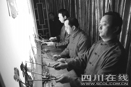 雪白的幕布上,兇猛的張飛,驍勇的關(guān)羽輪流揮刀騎馬上陣。鼓點(diǎn)越來越密,關(guān)羽與蔡陽的搏斗也越來越激烈……昨日下午,閬中嘉陵江邊,王氏兄弟正在排練川北皮影戲經(jīng)典劇目《斬蔡陽》,為參加上海世博會做準(zhǔn)備。