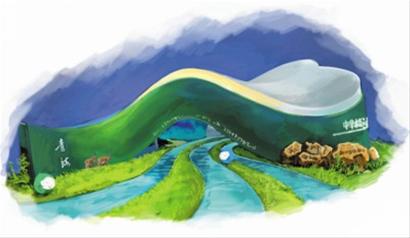 整個展館的外部造型,全部采用流暢的曲線,沒有生硬的幾何線條,突出了自然的特色。外墻的色調用明快的綠、白兩種顏色組成,綠色代表著江河源頭的生命氣息和凈土特色,白色象征著高聳的昆侖雪峰。參觀者可以看到清澈的江河之水在腳下淙淙流淌,皚皚的雪峰和自己咫尺相望。展館有意沒有過多采用多媒體手段,而盡量突出自然特色,目的是給參觀者一種真實而全新的審美體驗,同時也在凸顯青海 “環(huán)保立省”、 “生態(tài)立省”的發(fā)展之道。