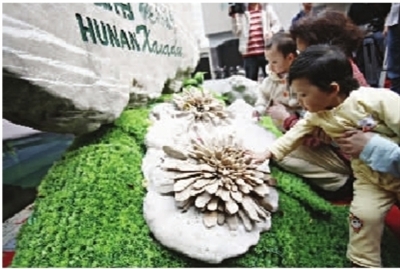 當(dāng)他們將這塊形狀天然的菊花石送到長(zhǎng)沙時(shí),已是兩個(gè)月以后。上海世博會(huì)湖南館創(chuàng)意總監(jiān)、清華大學(xué)美術(shù)學(xué)院副院長(zhǎng)魯曉波一見到這塊石頭,連連稱贊,“形態(tài)自然,是菊花石中的菊花石,叮囑我們不要多加工,就是要保持其原貌。”