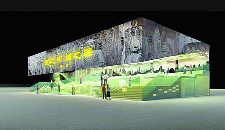 河南館的建筑外形由一個(gè)“中”字變形而來(lái),分上中下三層空間,其中中部構(gòu)成一個(gè)全開(kāi)放的坡面空間,為展館主體,上層主要是穹頂裝置,下層則設(shè)計(jì)為一個(gè)藏寶室。正面是“國(guó)之中、城之源”及“河南”幾個(gè)大字;側(cè)面,盧舍那大佛微笑了千年的龍門(mén)石窟,觀之令人震撼。展館主體空間,由數(shù)千個(gè)文物復(fù)制品、人物模型組成了一個(gè)實(shí)體的、起伏綿延的游行隊(duì)伍,仿佛是一場(chǎng)流暢的盛大演出。據(jù)了解,上海世博會(huì)河南館正在加緊裝修布展,各種展品正陸續(xù)運(yùn)往上海,參展文物和大游行人偶4月10日~15日安放到位,4月15日~20日試運(yùn)行,4月20日后將隨中國(guó)館試運(yùn)營(yíng)。昨天,河南世博辦還向記者解讀了河南館的五大亮點(diǎn)。