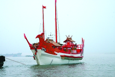 在已經(jīng)完工的上海世博會(huì)日本館里,有一個(gè)以“遣唐使”為中心的展區(qū),展現(xiàn)從中國(guó)流傳至日本的文化千年傳承的歷史演進(jìn),定于6月12日舉行的世博會(huì)日本館日,將會(huì)以重現(xiàn)歷史的方式來(lái)紀(jì)念那些為中日文化交流做出巨大貢獻(xiàn)的先驅(qū)。為此,日本角川文化振興財(cái)團(tuán)投入巨資,領(lǐng)銜推出了“‘遣唐使船’再現(xiàn)計(jì)劃”,目前,依據(jù)歷史資料、按當(dāng)年尺寸和結(jié)構(gòu)仿制的“遣唐使船”已在張家港市長(zhǎng)明造船有限公司建成,經(jīng)水上調(diào)試后將于近日運(yùn)回日本。