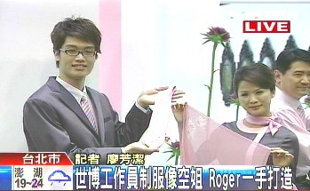 中新網(wǎng)4月15日電 據(jù)臺(tái)灣TVBS報(bào)道,上海世博會(huì)臺(tái)北館將于4月20日試營運(yùn),臺(tái)北市府15日特別對(duì)外召開記者會(huì),讓臺(tái)北館工作人員的制服亮相,而幕后設(shè)計(jì)推手是知名造型大師Roger,他也現(xiàn)身說明設(shè)計(jì)理念。