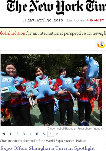 《紐約時報》報道,世博會近些年來或許已經失去昔日的光彩,但中國試圖為其抹去灰塵,在它的第二大城市上海舉辦一場可以和2008年奧運會相媲美的盛會,令世博會重新大放異彩。