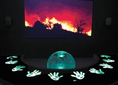 從“希臘的一天”中,游客看到了城市生活的繁忙與樂趣,也發(fā)現(xiàn)城市面臨的挑戰(zhàn)與難題。就像在“生態(tài)”那一章中:當5位游客同時把雙手按在互動桌上時,屏幕上觸目驚心的環(huán)境污染立即消失,取而代之的是希臘為應(yīng)對挑戰(zhàn)而做的努力,如臨海而建的風(fēng)能發(fā)電場、居民住宅上的太陽能屋頂?shù)。小小的“互動”告訴我們:生態(tài)城市僅僅依靠一個人的努力是不夠的,同心協(xié)力,才會有“更好的生活”。(劉穎)