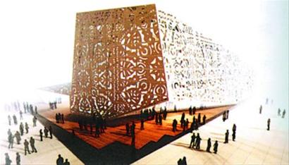 波蘭館外形抽象且不規(guī)則,表面布滿鏤空花紋,仿若民間剪紙,使參觀者獲得有趣的視覺體驗(yàn):色彩變幻的光線穿過(guò)剪紙圖案在館內(nèi)營(yíng)造一種明暗錯(cuò)落的效果。