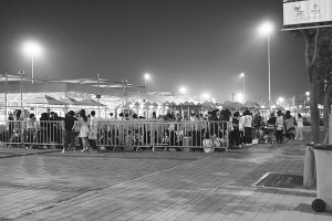 500多人在圍欄邊席地而坐,或聊天或瞌睡,為的是上午9時(shí)開園后第一時(shí)間進(jìn)入……這是今晨1時(shí),記者在世博園區(qū)浦東上南路入口處看到的情形。同樣的一幕,也出現(xiàn)在了距離文化中心較近的長清路、洪山路、高科西路等入口,總?cè)藬?shù)不下2000人。如此場面,令值夜班的安保人員傻了眼,“開園第一天也沒這么早來的,有的昨天還沒閉園就來了!”
