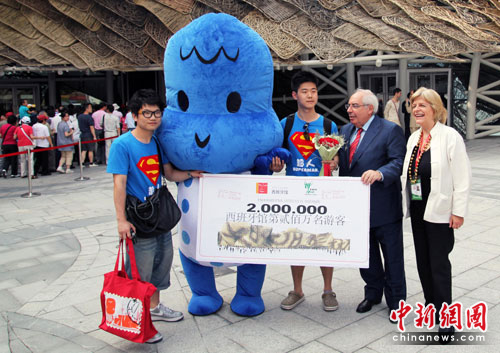 中新網(wǎng)上海6月22日電(記者 殷春永)上海世博會(huì)西班牙館21日迎來(lái)第200萬(wàn)名游客,除外觀酷似“大籃子”的造型給人們難忘的印象外,該館的接待人員能說(shuō)西班牙語(yǔ)、中文和英語(yǔ),亦頗受游客贊賞。