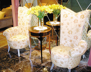 既然名為情侶椅,當然最適宜于擺放在私密的臥室內(nèi)。也許正應了情侶之間容易存在的默契,相處時感覺甜蜜,獨處時也要有自己的美好心情,所以雖然兩張椅子的扶手采取的是不對稱的設(shè)計,讓一對情侶椅子一個沒有左扶手、一個沒了右扶手,單獨看一張時卻也獨特,當兩張椅子合二為一的時候,又是一個十分貼合的雙人坐椅,高高的靠背弧度優(yōu)美,坐下去時身心都得到了徹底的放松。用手輕輕觸摸布藝表面,可以感覺到椅子上的精致繡花,溫馨而有立體感。