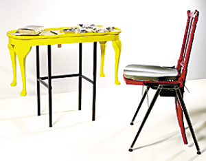 這張黃色桌子和紅色椅子是由舊桌椅改造而成的。美國設計師在舊椅子和桌子底部加上長長的黑色金屬腿,并為桌子和椅子配上亮麗的顏色。這樣一來,矮矮的桌子和椅子長高了,原本的四條腿變得不著地,不過卻因為這樣,看起來很特別。媒體在介紹這個設計時評價,這種舊物翻新的方式將傳統(tǒng)與現(xiàn)代相互結(jié)合,不僅創(chuàng)意獨特,而且節(jié)約了物資。