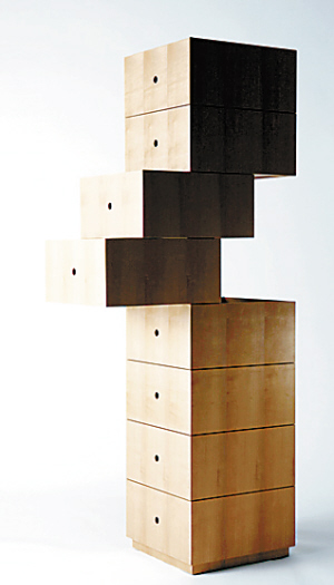 這個由女設計師Tadao Hoshino設計的“異形”抽屜組合,靈感來自于一位女性不斷膨脹的儲物愿望。同為女性,女設計師Hoshino比任何人都明白女士們總會不斷購買服飾而讓自己的抽屜不堪負荷。這個組合家具共有八個相同的抽屜,雖然每個抽屜的樣子并不特別,只是四方的木質(zhì)抽屜,然而每個抽屜的排列方式卻很特別,形成了一種組合的趣味。(陳薇薇、陳晶晶)