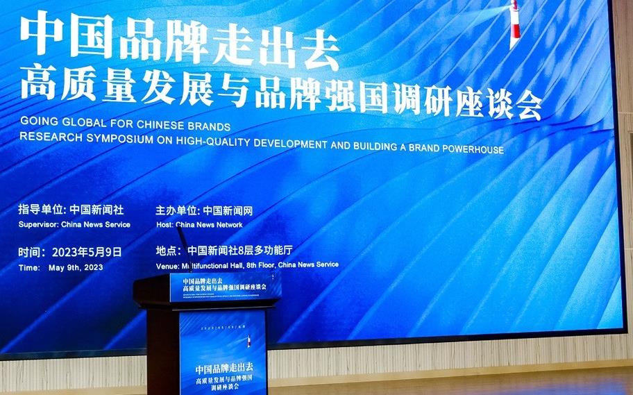 2023年5月9日,由中國新聞社指導、中國新聞網(wǎng)主辦,以“中國品牌走出去”為主題的高質(zhì)量發(fā)展與品牌強國調(diào)研座談會在北京舉行。調(diào)研座談活動以推動中國高質(zhì)量發(fā)展,加快品牌強國建設,助力中國品牌走向世界為主旨。