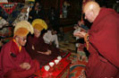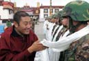 拉薩大昭寺僧人向武警官兵敬獻(xiàn)哈達(dá)