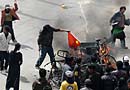 拉薩師專(zhuān)學(xué)生觀看3·14事件展牌