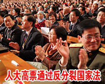 ·美僑界祝賀中國(guó)兩會(huì)閉幕 熱議《反分裂國(guó)家法》(15日) ·花絮:搶座位男士展風(fēng)度 搶新聞?dòng)浾邤[烏龍(14日) ·溫家寶兩答反分裂國(guó)家法:堅(jiān)定表態(tài) 溫情"釋法"(14日) ·上海臺(tái)商:把保護(hù)臺(tái)胞權(quán)益寫入法律“感覺很好”(14日)