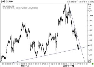 因投資者擔(dān)憂愛爾蘭財(cái)政問題惡化并可能想歐元區(qū)蔓延,市場避險(xiǎn)情緒繼續(xù)升溫,推升美元繼續(xù)走強(qiáng),美指突破79創(chuàng)下9月28日以來的新高。中國緊縮傳聞愈演愈烈,大宗商品價(jià)格紛紛跳水,原油價(jià)格近期跌幅逾7%。周二金價(jià)一度跌破1330美元,跌幅超過2%。