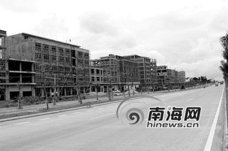 記者在椰海大道邁仍村路段看到,道路兩旁矗立著一排排已停工的多層樓房。瓊山區(qū)城管執(zhí)法大隊副大隊長王斌說,在邁仍村里還有不少違法建筑。