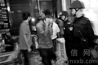 “緊急通知,今晚九點半在分局集中,參加統(tǒng)一行動!蓖21時左右,官渡公安分局治安大隊民警們突然接到了臨時通知。22時,內(nèi)線發(fā)出信號,警車開往珥季路某娛樂會所。當(dāng)50多名全副武裝的警察沖進該娛樂場所時,訓(xùn)練有素的迎賓們并沒有慌亂,漂亮的姑娘們依舊招牌式笑著:“歡迎光臨”。