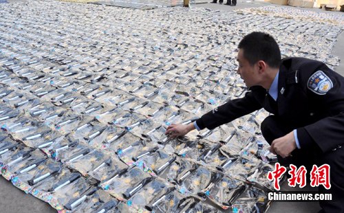 中新網(wǎng)重慶11月4日電(劉興敏)重慶云陽(yáng)縣警方4日通報(bào)稱,該縣公安民警搗毀了一個(gè)批發(fā)銷售仿真槍的窩點(diǎn),仿真槍銷售者現(xiàn)已被拘留。