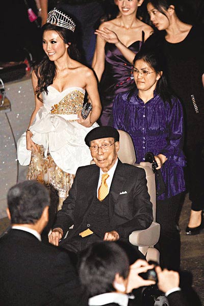 中新網(wǎng)8月2日電 據(jù)香港文匯報(bào)報(bào)道,2010“香港小姐選舉”是TVB一年一度重頭節(jié)目,老板邵逸夫每年都亮相,昨晚6點(diǎn)多邵逸夫在夫人方逸華陪同下出現(xiàn)紅館。