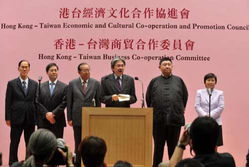 中新網(wǎng)8月23日電 據(jù)香港大公報報道,港臺商貿(mào)與文化交流可望跨進一大步。據(jù)悉,應(yīng)“臺港經(jīng)濟文化合作策進會”邀請,香港財政司司長曾俊華將于本月二十八日以“港臺經(jīng)濟文化合作協(xié)進會”榮譽主席身份,率領(lǐng)逾三十人代表團訪臺四天。訪問團由曾俊華任主席,多名問責(zé)局長包括政制及內(nèi)地事務(wù)局局長林瑞麟、商務(wù)及經(jīng)濟發(fā)展局局長劉吳惠蘭以及民政事務(wù)局局長曾德成將以協(xié)進會代表身份隨行。
