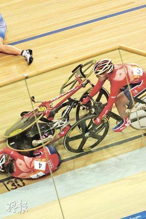 廣州亞運(yùn)女子場(chǎng)地記分賽,出現(xiàn)振奮人心的一幕。有“女版黃金寶”之稱的香港自行車選手黃蘊(yùn)瑤,向世人示范了什么才是鋼鐵意志,她在比賽中段遇上嚴(yán)重意外,身體更被單車兩度輾過,但仍堅(jiān)忍肋骨骨折及肺氣腫傷痛繼續(xù)比賽,終為香港取得一面“血淚銀牌”。頒獎(jiǎng)后須坐輪椅離場(chǎng)的黃蘊(yùn)瑤不時(shí)激動(dòng)痛哭,令全場(chǎng)所有人動(dòng)容