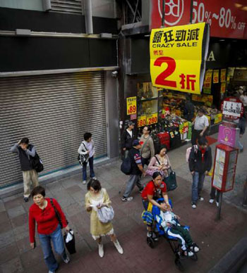 英國(guó)媒體6日刊登了一篇曾蔭權(quán)的訪問(wèn)報(bào)道,內(nèi)容談到特區(qū)政府如何應(yīng)對(duì)國(guó)際金融海嘯的沖擊。曾蔭權(quán)說(shuō),他從未見(jiàn)過(guò)如此急速的經(jīng)濟(jì)衰退,預(yù)計(jì)經(jīng)濟(jì)收縮可能較特區(qū)政府預(yù)期的2%至3%為高!氨灸昵皟蓚(gè)月的出口下跌接近四分之一,這大概是自二次大戰(zhàn)以來(lái)最厲害的跌幅。”他續(xù)道,自90年代中國(guó)成為“世界工廠”開(kāi)始,轉(zhuǎn)口貿(mào)易已成為香港其中一項(xiàng)最重要的“經(jīng)濟(jì)引擎”。