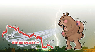 港股17日再瀉1152.5點,收報21084.6點,跌幅達5.18%,創(chuàng)近7個月低位,大市總成交增至949億元。國企指數(shù)受內(nèi)地A股跌勢未止拖累,一度失守11000點大關(guān),收市報11037點,跌854點,單日跌幅逾7%,是區(qū)內(nèi)跌幅最慘烈的指數(shù),可謂“國企股災”。恒指、國指、紅籌等成份股中,只有港燈及中電逆市升,而整個港股上升的股份只有60多只,近千只股份下跌。