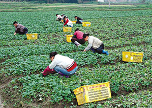 圖:粵北韶關供港菜基地的工人正在采摘蔬菜。(圖片來源:文匯報)