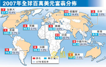 不過,受累于美國次按問題,近半年金融業(yè)界的資產(chǎn)撥備再創(chuàng)新高,令環(huán)球股市去年10月來持續(xù)下挫,不少地區(qū)的股市跌幅近半,因此,金融資產(chǎn)達百萬美元的富翁,今時今日或者已沒有美林所指的那么多。