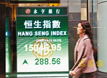 恒指15日一度升628點(diǎn),收市升幅收窄至288點(diǎn)。(圖片來源:文匯報(bào))