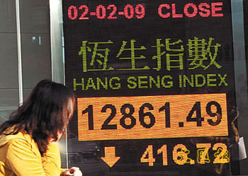中新網(wǎng)2月3日電 據(jù)香港《文匯報(bào)》報(bào)道,外圍下跌令港股結(jié)束一連兩天的升市,恒指2日低開(kāi)84點(diǎn)后再向下,最多跌過(guò)545點(diǎn),收?qǐng)?bào)12861點(diǎn),跌416點(diǎn),成交疲弱,只有357億元。