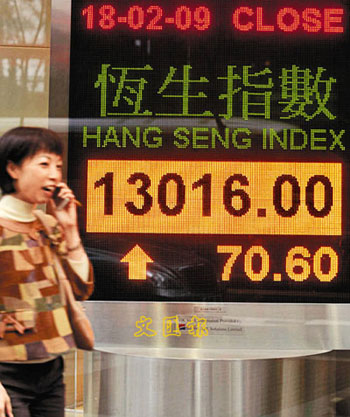 中新網(wǎng)2月19日電 據(jù)香港《文匯報》報道,美股周二急跌近300點,日韓股市也下跌情況下,令港股18日低開162點,加上午后A股跌近5%,市場普遍認為18日港股會大瀉收場,但恒指下午在中移動、和黃等重磅股的補倉盤帶動下,來個“V”形反彈,從底部急彈300點,令港股最終倒升,并重上13000點大關(guān)。