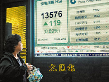 泓福證券研究部主管鄧聲興也表示,3月31日是季結(jié),雖然見部分基金入貨,但港股向好,主要受內(nèi)地股市上升及經(jīng)濟數(shù)據(jù)好轉(zhuǎn)刺激,相信本周港股將在1.3萬-1.42萬點徘徊。