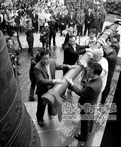 3月18日上午10時(shí),中英街博物館前,來自深港兩地的代表一齊撞響中英街的警示鐘,18聲悠長的鐘聲響徹中英街;在博物館另一側(cè)的中英街上,來自沈陽的一個(gè)旅行團(tuán)正在展示購物的收獲,掏錢較多的也不過是180元一條,印滿洋文的“雙喜”牌香煙!疤挆l了,很失望”,一位游客說:“沒生意,沒法做了”,中英街一家店鋪的老板娘擺擺手對記者說。