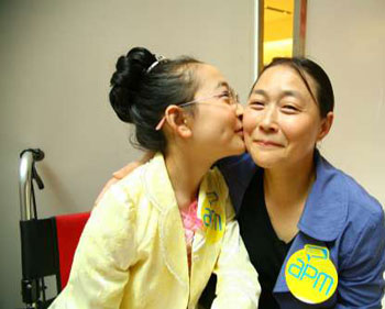 中新網(wǎng)5月11日電 據(jù)香港《大公報(bào)》報(bào)道,汶川大地震毀掉很多人民的理想,奪去他們的肢體,更毀掉不少幸福家庭。來自四川的“芭蕾女孩”李月,10日與母親來香港慶祝她們?yōu)暮蟮谝粋(gè)母親節(jié)。失去一條腿的李月表示,沒有準(zhǔn)備什么禮物,因?yàn)楹煤蒙罹褪撬徒o媽媽最好的禮物。
