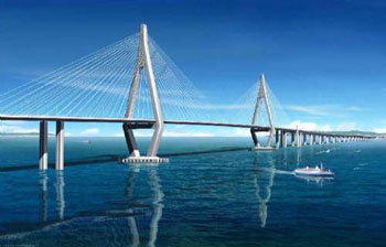 據(jù)方案估算,大橋用鋼量達123.35萬噸,較杭州灣跨海大橋多一半,相當于建造11個“鳥巢”國家體育場。