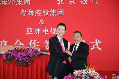 簽署儀式11日早在北京飯店舉行,由亞視行政總裁胡競英跟中國人壽、招商銀行、中國海外集團、北京銀行、粵?毓杉瘓F五間企業(yè)的高層簽署戰(zhàn)略合作協(xié)議。查懋聲、多位亞視高層、過百名政商界人士出席,場面熱鬧。王征以主持身份逐一介紹嘉賓,并由查懋聲首先致詞。