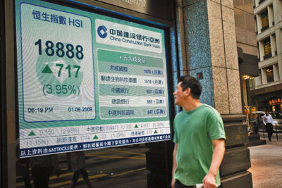 打破“五窮”宿命的港股,踏入6月份首個交易日,大有再破“六絕”之勢。在內(nèi)地PMI數(shù)據(jù)理想消息帶動下,延續(xù)上周強勢,連續(xù)第3天急升,3天共升達1895點。大市1日在工商及銀行股帶領(lǐng)下,午后升幅進一步擴大,并以近全日高位收市,收報18888點,升717點或3.95%,升幅為亞太區(qū)中除印度尼西亞外最大的股市。