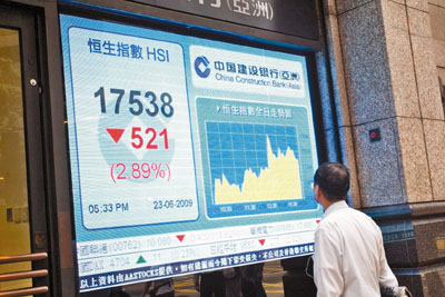 港股23日裂口低開,一度急跌近700點(diǎn)至17375點(diǎn),午后跌幅一度收窄至17683點(diǎn),但全日仍挫521點(diǎn),收市報(bào)17538點(diǎn),跌幅是3月以來(lái)最大,成交664億元。匯豐的季度調(diào)查顯示,40%基金經(jīng)理建議減持股票。