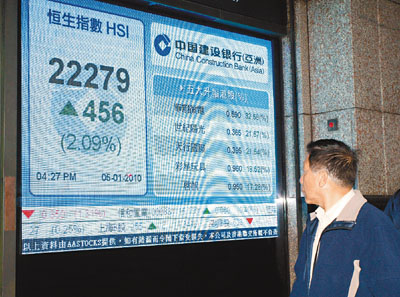 分析員指出,港股5日除受美股帶動(dòng)外,A股也提供不少動(dòng)力,因?yàn)殂裤秸诙唐趦?nèi)推出股指期貨,即沽空政策,令A(yù)股造好,刺激到中資股顯著上揚(yáng),帶動(dòng)港股上揚(yáng)。