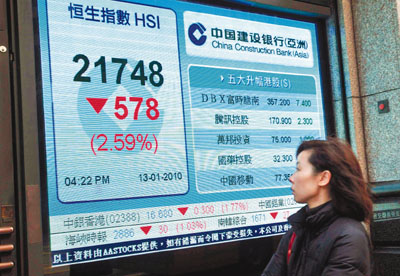 人民銀行周二晚出其不意宣布上調(diào)銀行存款準(zhǔn)備金率50個基點(diǎn),凍結(jié)近3000億元人民幣資金,市場擔(dān)憂內(nèi)地收緊銀根措施陸續(xù)有來,拖累亞太區(qū)主要股市急挫。市場12日晚普遍預(yù)期13日港股會跌約300至400點(diǎn),結(jié)果跌幅更超預(yù)期。恒指低開336點(diǎn),午后跌幅擴(kuò)大,最多跌638點(diǎn),收市報(bào)21748.6點(diǎn),跌578點(diǎn),跌幅達(dá)2.6%。