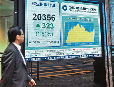中新網(wǎng)1月29日電 據(jù)香港《文匯報》報道,聯(lián)儲局議息結(jié)果顯示前景樂觀,外圍股市回穩(wěn),連跌6天的港股在期指結(jié)算日也借機反彈,恒指最多彈逾400點,全日收報20356點,升323點,升幅1.6%,扭轉(zhuǎn)6天的跌勢,但成交額卻減至664.7億元,反映買盤不活躍。