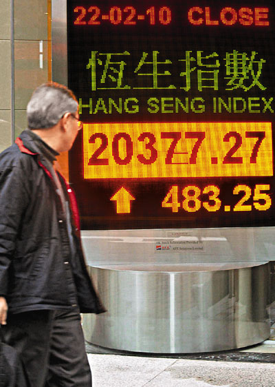 中新網(wǎng)2月23日電 據(jù)香港《文匯報(bào)》報(bào)道,內(nèi)地股市長(zhǎng)假期后重開(kāi),A股走勢(shì)偏軟,滬深兩市均未能收紅盤。由于香港上周五已經(jīng)大跌,加上下午賣地成績(jī)理想,令恒指22日擺脫A股的羈絆,大市在匯控、中移動(dòng)及一眾地產(chǎn)股上升帶動(dòng)下,重上20000點(diǎn)水平。